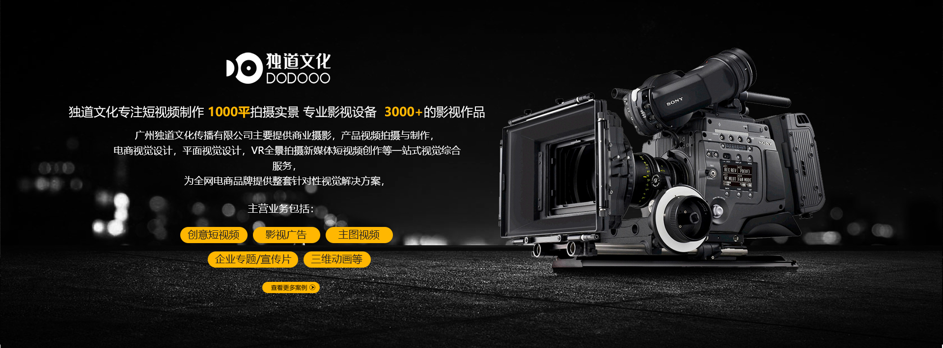 廣州獨(dú)道文化傳播有限公司主要提供商業(yè)攝影,產(chǎn)品視頻拍攝與制作,電商視覺設(shè)計(jì),平面視覺設(shè)計(jì),VR全景拍攝新媒體短視頻創(chuàng)作等一站式視覺綜合服務(wù)為全網(wǎng)電商品牌提供整套針對(duì)性視覺解決方案,